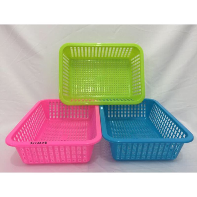 Keranjang plastik serbaguna, taruh apapun bisa. Bahan plastik tebal tidak mudah retak.